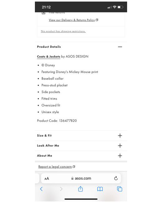disney jacket xl