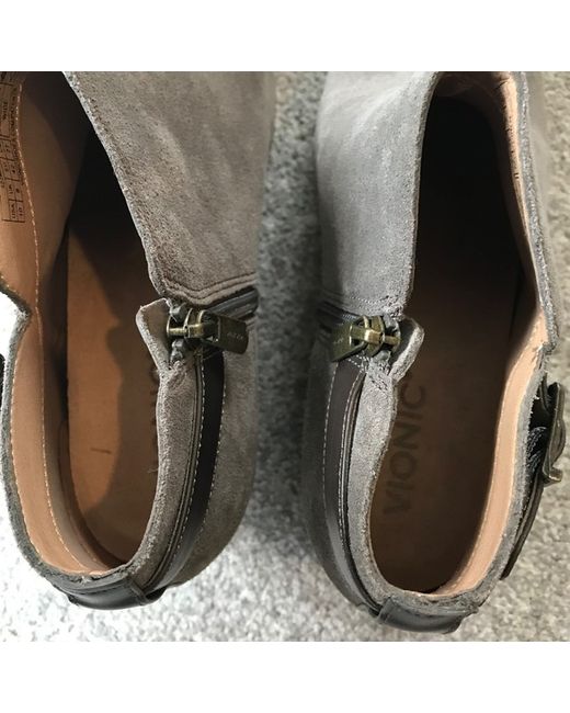 The Vionic Women's Millie Light Brown Suede Ankle Boots in size 8 offer both style and comfort with their almond toe shape, block heel style, and arch support feature. The ankle boots have a solid brown suede upper material and a zip closure for easy wear. Designed specifically for women, these boots by Vionic provide both fashion and functionality, making them a versatile choice for everyday wear.