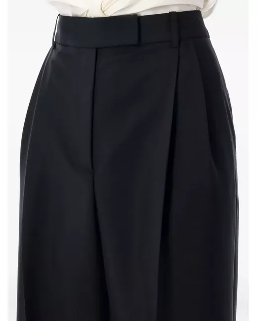 black pleated front and back welt back-pockets side-seam pockets virgin wool-mohair blend