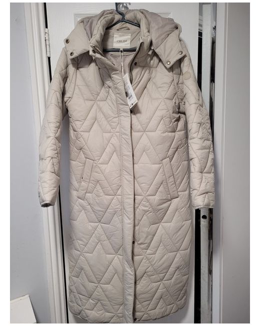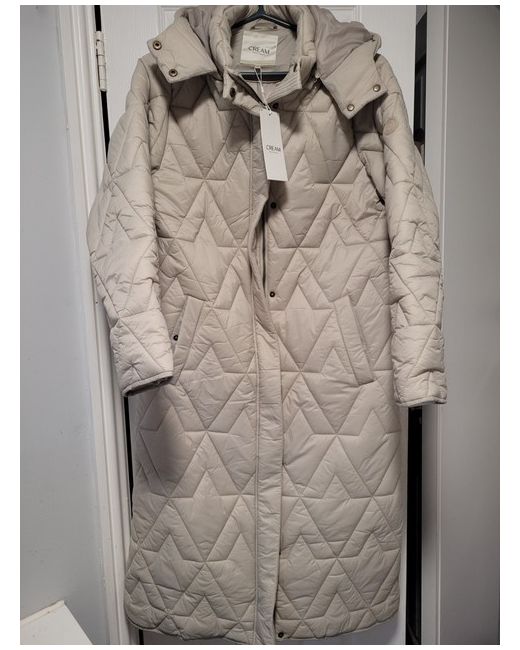 Elevate your seasonal wardrobe with the CREAM long women's jacket, a perfect blend of style and comfort for the transitional weather. Crafted from durable polyamide with a polyester lining, this puffer jacket is designed to keep you cosy without compromising on elegance. The feather grey hue lends a touch of sophistication to any outfit, while the logo accent adds a subtle brand nod. The jacket features a full zip front, a hood for added protection against the elements, and practical pockets to secure your essentials. With its lightweight construction, it's ideal for autumn, spring, and winter layering. Tailored to fit a size 40, this regular-style jacket offers both functionality and a sleek silhouette.