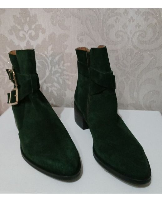 For sale is a stunning pair of green suede ankle boots from Jones Bootmakers. These boots are perfect for any occasion, especially for the upcoming Christmas party season. The lining is also made of leather, providing a luxurious feel and durability.