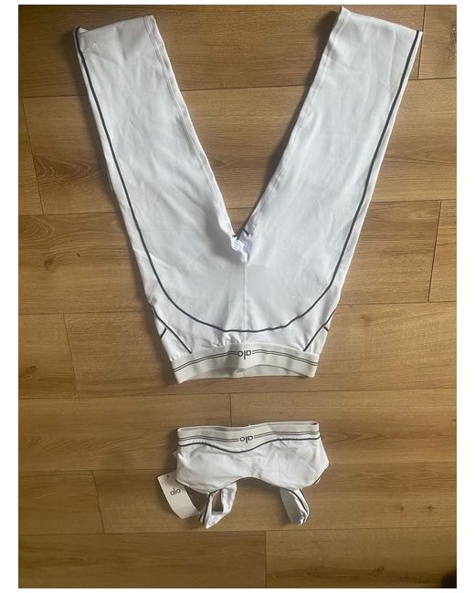 The Alo White Yoga Set in size 8 is a stylish and functional activewear set designed for women who enjoy yoga and other physical activities. The set includes a bra made from a comfortable blended fabric in a classic white colour, perfect for summer workouts. The ALO brand is known for its high-quality activewear, making this set a reliable choice for those looking for both style and performance in their workout gear. Perfect for women who want to stay comfortable and stylish during their yoga practice.