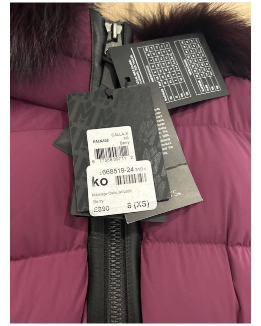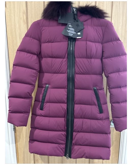 womens mackage calla agile-360 stretch light down coat berry size uk 8 (XS) #BR. RRP:£890 CALLA is a light down coat for women cut from our proprietary Agile 360 stretch shell with a removeable blue fox fur trim around the hood. It is meticulously tailored to a fitted silhouette to maximize comfort and ease of movement. Water resistant and repellent, it features an adjustable drawcord hood and insulated pockets. An elegant and versatile piece for elevated styling.