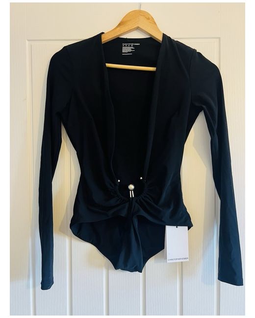 Christopher Esber Pierced Orbit One-Piece Swimsuit The Pierced Orbit one-piece is named for the signature brass orbit detailing that gleams from the plunging neckline. Cut from a slinky stretch fabric with a matte finish, the one-piece offers coverage with long sleeves. We recommend purchasing your normal size - this design fits true to size • High-leg cut • Cheeky bottoms • Colour: Black • Matte finish • Deep V plunging neckline • Long sleeves • Signature brass orbit detailing • 72% polyamide, 28% elastane • Hand wash Product Code: 216638794