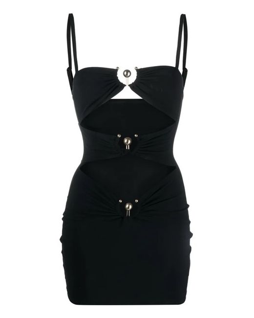 Christopher Esber cut-out Pierced Orbit Mini beach Dress Highlights black stretch-design cut-out detailing ring embellishment silver-tone hardware square neck adjustable spaghetti straps slim cut thigh-length Composition Polyamide 72%, Elastane 28% Washing instructions Hand Wash Measurements LENGTH 32.28 in WAIST 14.17 in BUST 22.83 in Shoulder Width 8.26 in