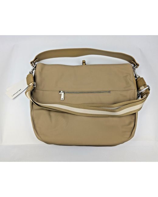 Expandable handbag. Long and short strap. Long strap - textile. Short strap - leather. Bag - coated textile.
