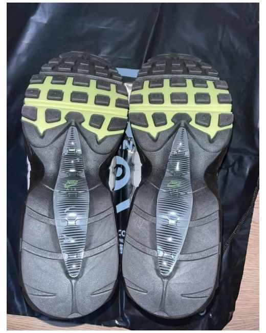 The Nike Air Max 95 Men's size 9 is a classic trainer featuring a low top design in black colour. This lace-up shoe from the Nike Air Max product line offers comfort with its foam insole and rubber outsole, making it ideal for casual occasions in spring. The non-signed sneaker has a standard shoe width and is perfect for those looking for a stylish and comfortable option in the men's department.