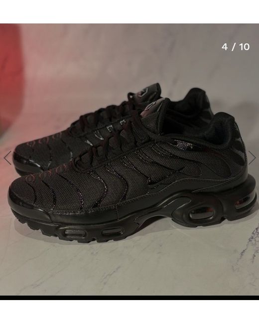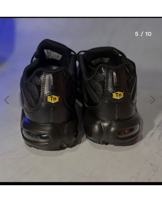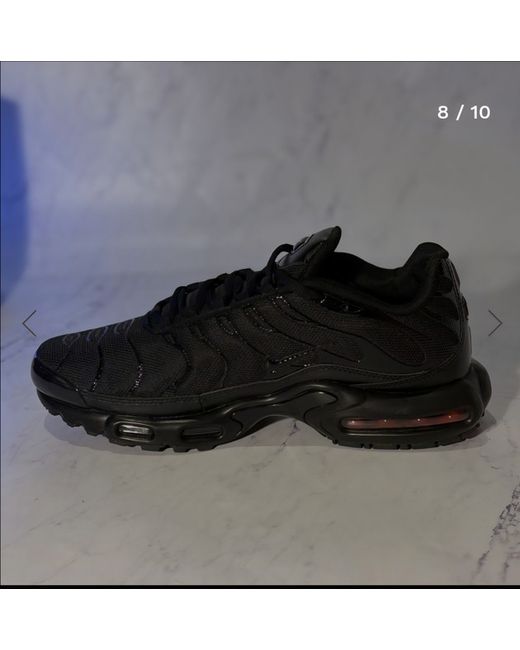 The Nike TN Trainers in size 8-11 are stylish and comfortable sneakers perfect for casual occasions. Made with a lace-up closure, fabric lining, and rubber outsole, these trainers are designed for running and jogging activities. The black colour and Nike branding add a touch of sporty style to your outfit, making them a versatile choice for men's footwear. Made in Vietnam, these trainers feature a foam insole for added comfort and support. Perfect for men looking for quality athletic footwear with a trendy design.
