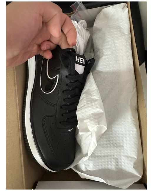 Nike Air Force 1 hello black Fantastic shoe that could probably be worn with smart clothes (blazer etc) Most premium air force 1 feel. Box maybe ever so slightly damaged