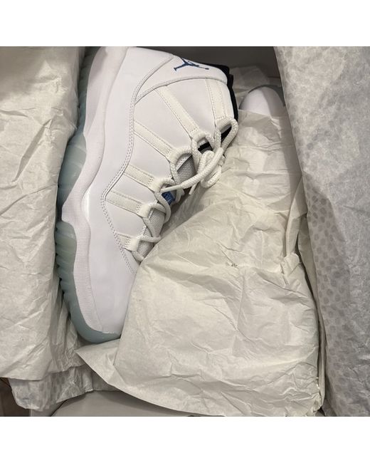The Jordan 11 Legend Blue 2014 is a stylish and iconic sneaker designed for men. With a UK shoe size of 10 and a US shoe size of 11, this lace-up trainer features a classic blue colourway that is perfect for basketball performance. Made with a rubber outsole for durability and cushioned for comfort, this retro-themed Air Jordan model is a must-have for any sneaker enthusiast. Released in 2014, this product from the Air Jordan product line showcases the brand's signature style and design.