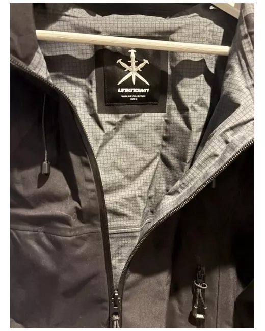 This product is a black gore tex jacket by the brand Unknown London, in a size medium for men. The jacket features a sleek design with a focus on functionality, perfect for the unpredictable British weather. With a medium size fit, this jacket offers a stylish and practical option for those looking for a quality outerwear piece with a touch of London flair. Brand new with tags never been worn