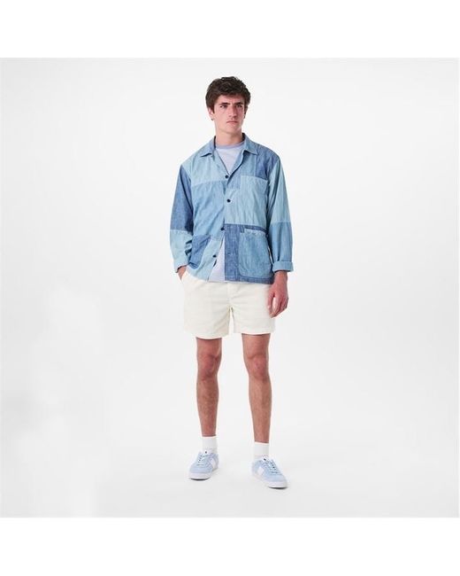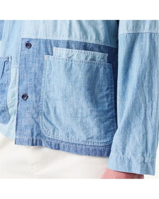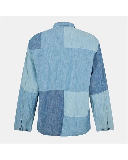 This shirt combines a surplus-inspired silhouette with a patchwork design composed of chambray in three indigo-dyed shades. - Classic Fit: Polo’s roomiest silhouette. Cut for a lower armhole and a fuller sleeve.