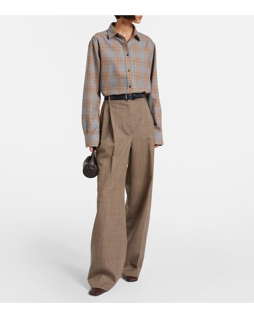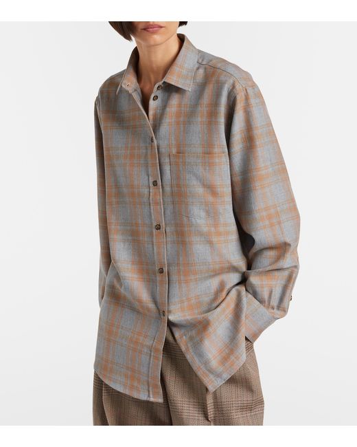 Material: 54% viscose, 46% wool. Care instructions: dry clean. Made in Portugal. Designer color name: Powder Check. Item color: gray, brown. Closure: buttoned front. Collar: classic (Straight point). Cuff: buttoned. Wool.