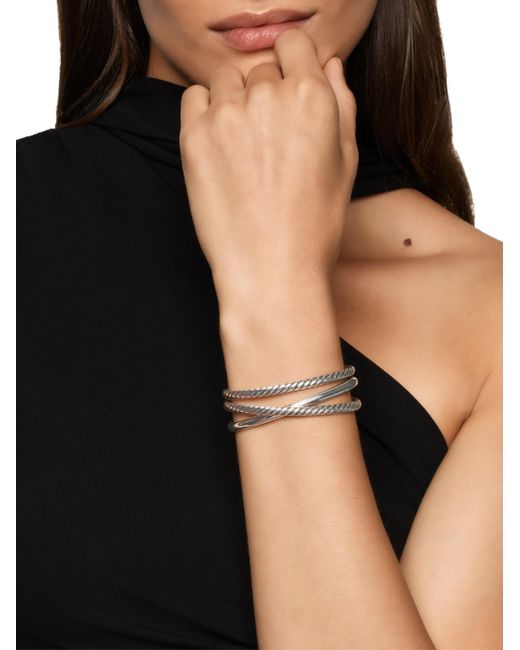 The Crossover Collection explores the rhythmic weaving of line to create form and movement. Using a dynamic range of smooth and cabled cords, the individual strands are meticulously entwined. Sterling silver Bracelet, 19mm Hinge opening Imported ABOUT THE BRAND David, a sculptor, and his wife, Sybil, a painter, launched their innovative jewelry brand in 1980 in New York City. Since then, the American design house has pioneered cutting-edge collections-from its iconic combination of sterling silver and diamonds to signature pinky rings. Today, with their son Evan, the Yurmans continue to deliver timeless pieces inspired by nature, art, ancient symbols and Manhattan's stunning architecture. Lsd Jewelry - David Yurman > David Yurman > Saks Fifth Avenue > Barneys. David Yurman. Color: Silver. Size: Medium.