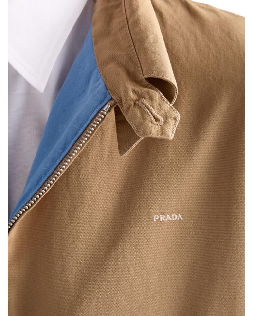 Regular fit Shirt-style collar Straight sleeves Zipper closure Pockets with piping Elasticized cuffs Drop shoulder Elasticized hem Lined Embroidered lettering logo on the front Imported 100% Cotton. Lsd Rtw - Prada Rtw > Prada > Saks Fifth Avenue > Barneys. Prada. Color: Brown. Size: 38.