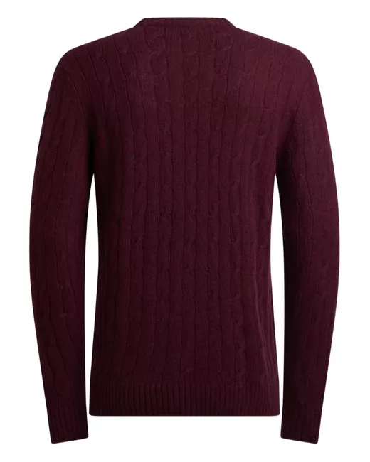 burgundy cable knit crew neck long sleeves cashmere ribbed cuffs