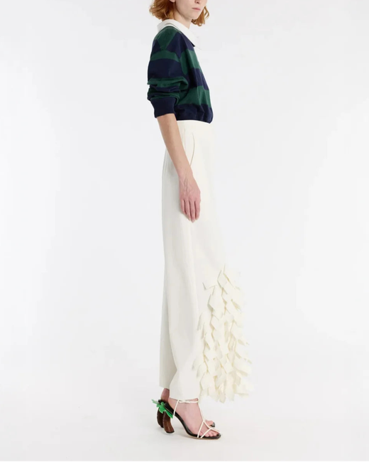 The Culottes with Rectangle Detail in Ivory by A.W.A.K.E. Mode is a wide-leg, high waisted culotte crafted in a comfortable stretch-crepe with rectangular appliqué at the hem. Zip fastening 86% Polyester, 10% Elastane, 4% Polyurethane Dry clean #PF25-P02.P05
