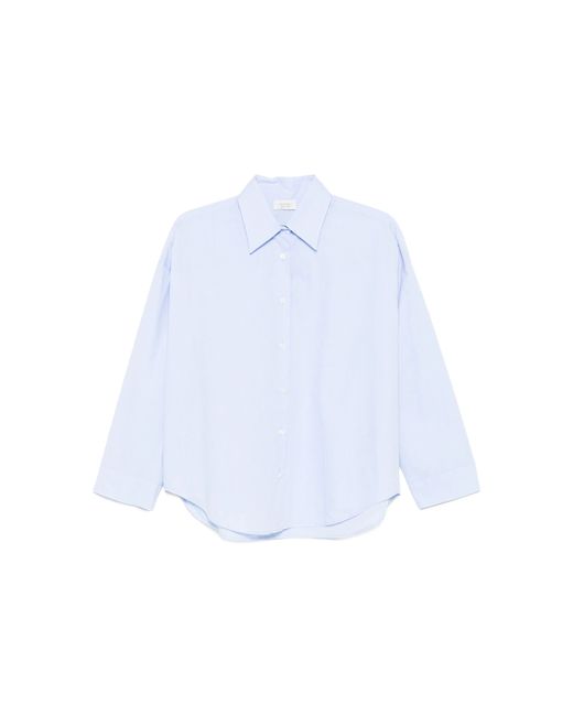 light blue cotton classic collar long sleeves front button fastening curved hem