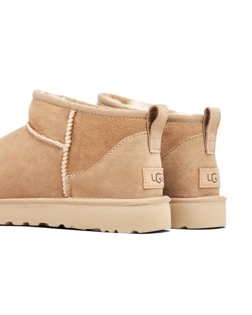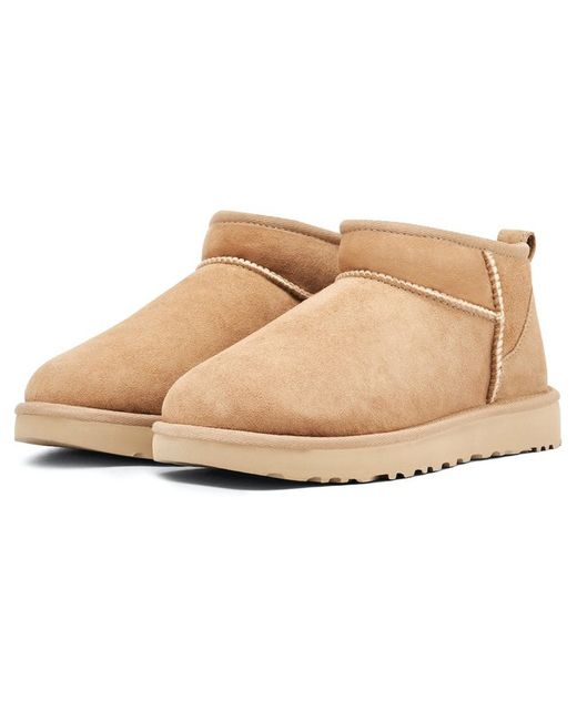 UGG Classic Ultra Mini Sand (W) Seen here in a neat “sand” colourway, the ever-popular UGG Classic Ultra Mini is back again for the new season. Completed with an UGG logo tab on the heel, will you be adding these to your footwear rotation?.