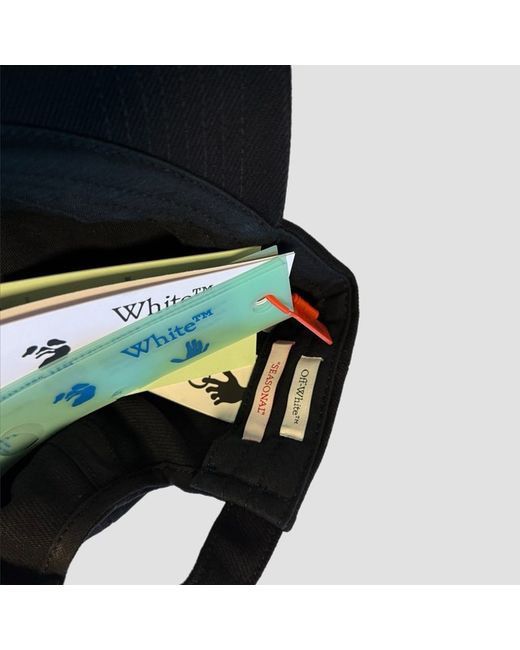 Off-White Bookish OW Baseball Cap The Bookish Baseball Cap brought to you by Off White is perfect for finishing off your look. Crafted from a pure cotton fabrication defined with a sleek jet black finish, this baseball silhouette is defined with tonal stitching to the six panel construction while the embroidered vents offer a breathable design. Styled with a curved peak and adjustable fastening to the rear, this cap is signed off with a contrasting Off White logo embroidered to the front for instant brand appeal. • RRP £210. • With a curved brim and an adjustable strap to the back. • Finished with the Off White spell out embroidered to the front. • Adjustable. • One Size. • Comes with tags.