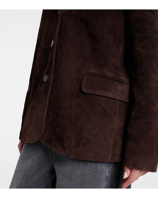 Material: 100% calf leather (suede). Care instructions: specialist clean. Made in India. Designer color name: Espresso. Item color: brown. Lining: 100% polyester. Closure: single-breasted (three buttons). Pockets: breast pocket, flap pockets, internal pocket. Notched lapel. Cuff: three buttons. Vent: double. Fully lined. Leather.