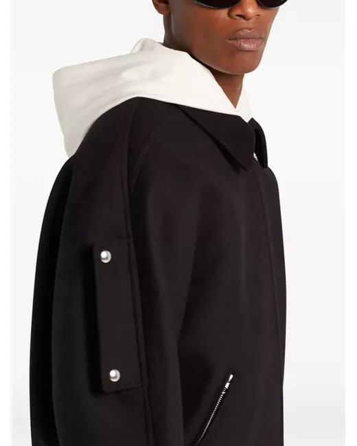 black pointed collar zip fastening side pockets shoulder tab detailing