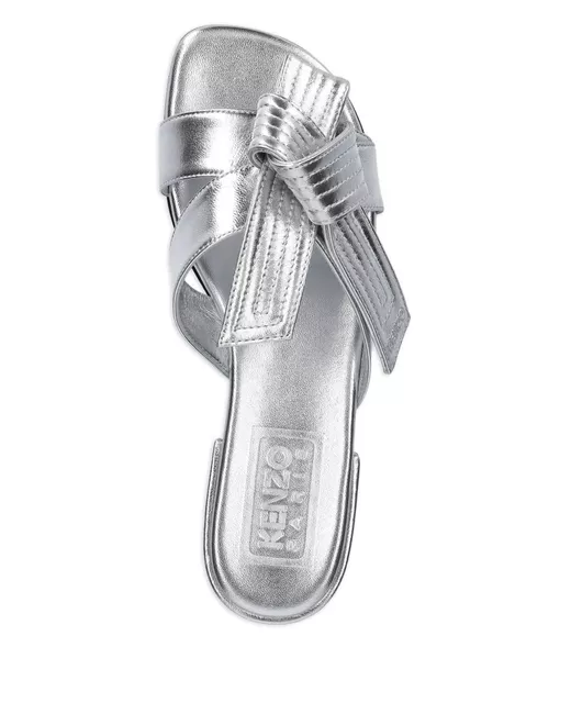 silver-tone leather knotted bow detail cross-over straps flat sole open toe