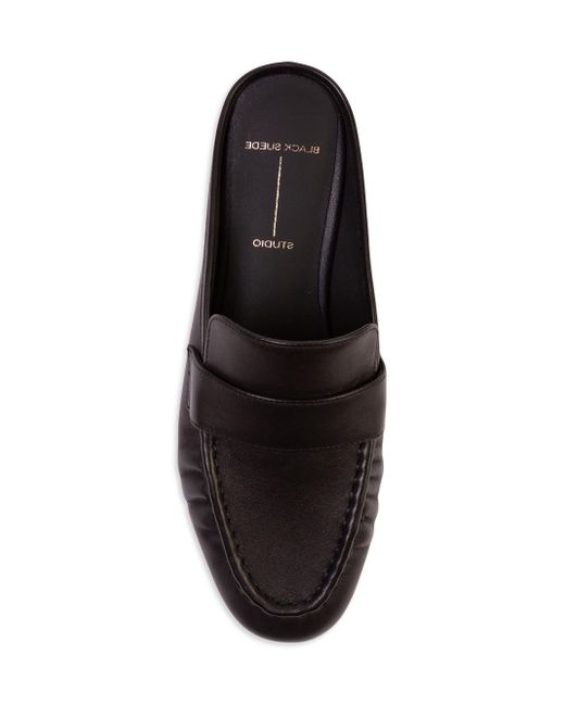 Round-toe backless slip-on loafers. Made with smooth buffed baby calf leather. Flat Leather Imported. Lsd Shoes - Shoes Lsd Mp > Black Suede Studio > Saks Fifth Avenue > Barneys. Black Suede Studio. Color: Black Leather. Size: 5.