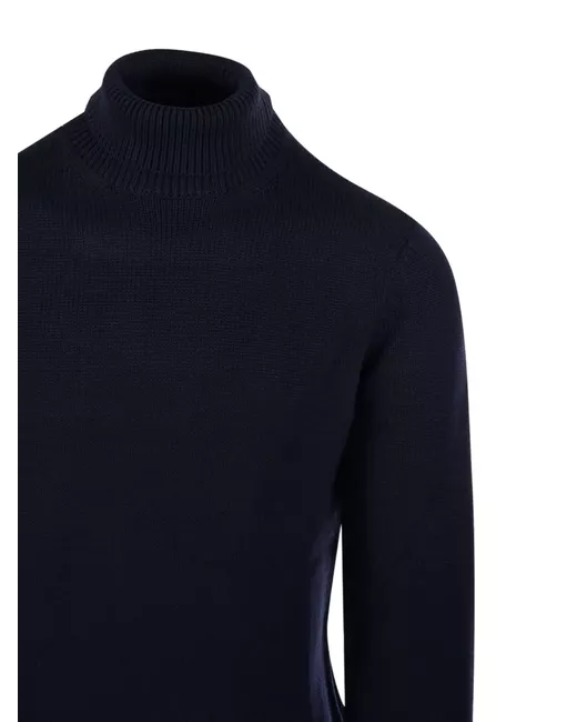 navy blue high neck long sleeves ribbed hem ribbed cuffs wool