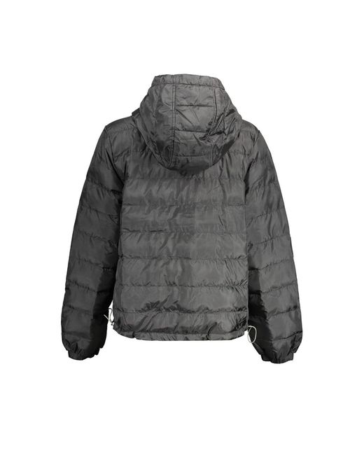 long-sleeved jacket with hood, 2 external pockets, 2 internal pockets, zip, buttons, embroidery, logo