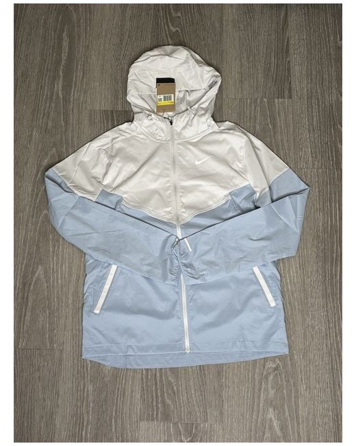 This Nike Windrunner jacket in Armory Blue is a lightweight activewear piece designed for running and jogging. Made from polyester with insulation material, it features a hood, full zip closure, and a sporty windbreaker style. The jacket is part of the Nike Windrunner product line, known for its performance and quality. Ideal for sporty individuals looking for a stylish yet functional outerwear option. (Size small fits xs)