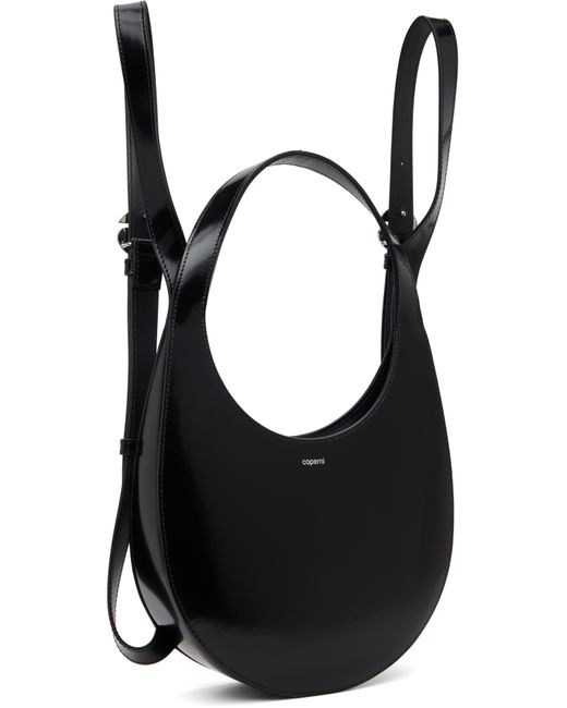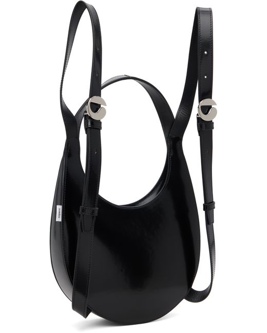Patent leather backpack. · Integrated carry handle · Logo hardware at adjustable shoulder straps · Logo stamp at face · Logo flag at side · Two-way zip closure · Suede lining · Logo-engraved silver-tone hardware · H6.5 x W8.75 x W2.5 · Total height: H14 Supplier color: Black