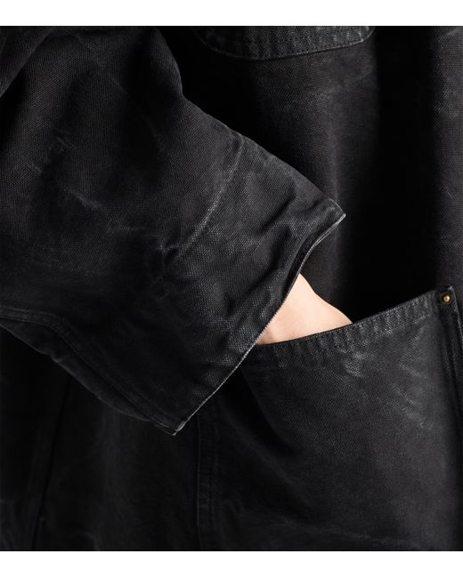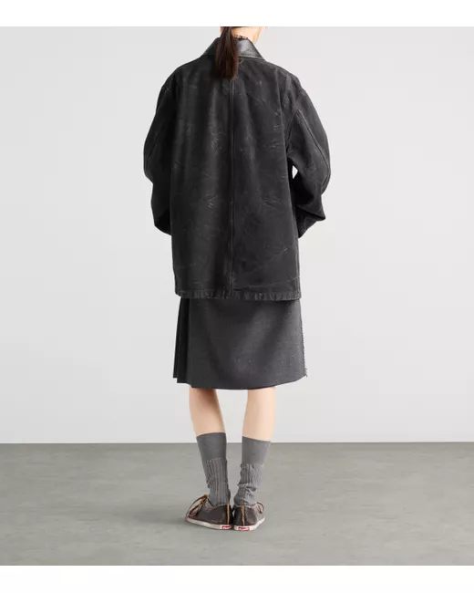 There's something nostalgic about the notion of boyfriend clothing - the comforting embrace of the oversized fit and lived-in feel of the fabric. Musing on that concept, Prada uses canvas that's garment-dyed and distressed by hand to cut the generous frame of this jacket, making each one unique.