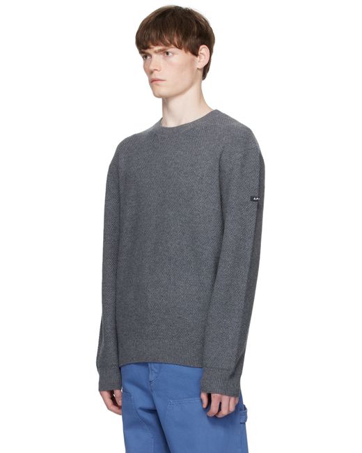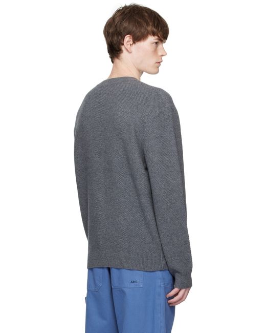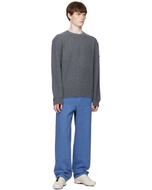 Knit virgin wool sweater. · Rib-knit crewneck, hem, and cuffs · Dropped shoulders · Logo patch at sleeve Supplier color: Heathered Anthracite