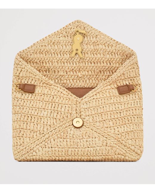 Saint Laurent's Cassandre silhouette is a celebration of the Maison's foundational aesthetic: fiercely elegant yet inherently coquettish. This summery raffia envelope shares its name with the artist Adolphe Mouron Cassandre, who in 1961 created the iconic ysl logo by artfully combining the initials of the label's founder - the very same emblem that punctuates the front flap of this love-forever cross-body pouch.
