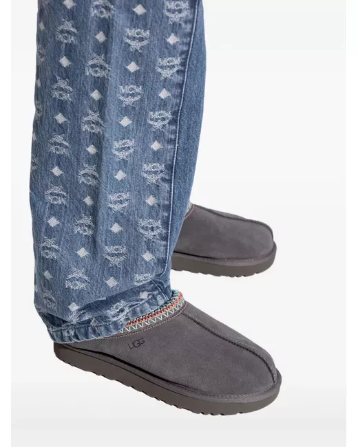 dark grey suede upper braided trim slip-on style round toe branded insole