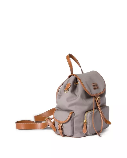 grey leather trim flap closure buckle fastening front zip pocket side flap pockets