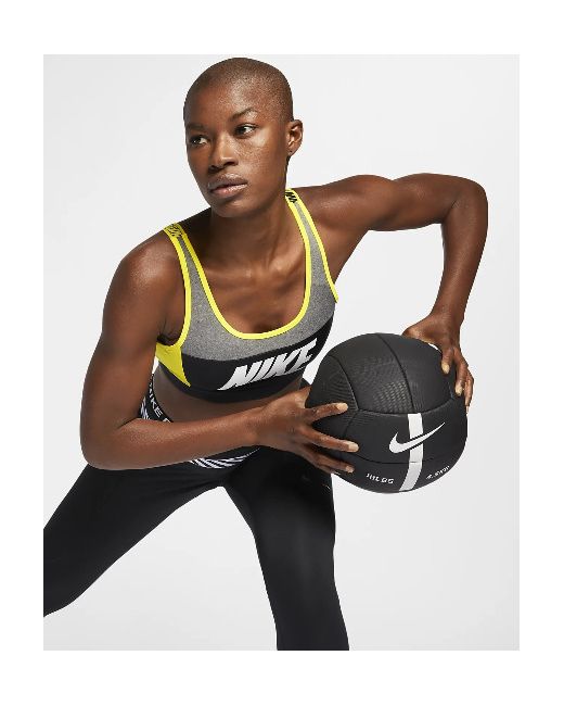 Smooth, lightweight fabric (made with at least 50% recycled polyester fibres) wicks sweat to keep you dry, comfortable and focused. An iridescent logo fades into the chest to create a playful look that moves with you through every rep, step and jump.