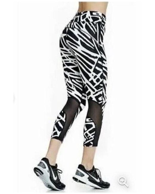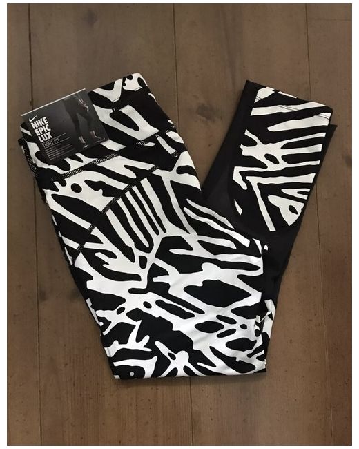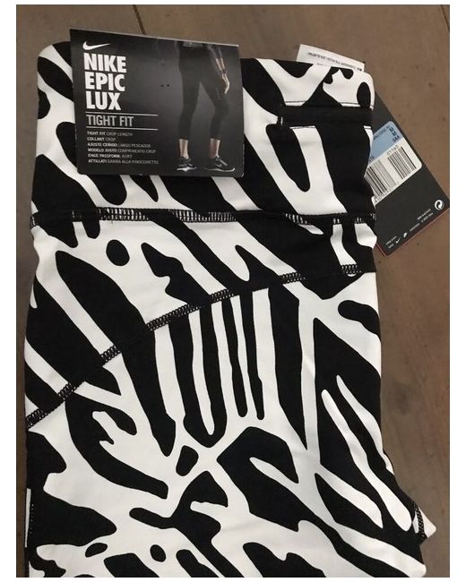 Nike Palm Epic Lux Black & White Mesh Insert Capri Leggings, Size M. Nike takes comfort and style in stride with the sleek compressive fit and chic palm print of these Epic Lux Dri-FIT cropped leggings. * Mid rise * Skinny fit through hips and thighs * Skinny cropped leg * Pull-on styling with supportive waistband * Compressive fit * Moisture-wicking Dri-FIT fabric * Flat seams for a smooth feel * Allover palm print * Approximate inseam: 21" * Nylon/spandex * Machine washable * Imported Condition is New with tags.