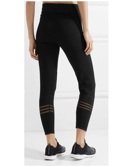 Adidas Performance Icon Mesh Trimmed & Wool Stretch Knit Pants/ Leggings, Size S. EDITORS’ NOTES adidas Performance's 'Icon' pants are designed to take you seamlessly from the gym to post-workout brunch. This stretch-knit pair has a drawstring waistband for a secure fit and ribbed panels that sculpt and support your muscles. The mesh trims are a nod to the label's iconic three stripe logo. Fits true to size, take your normal size High-rise pants/ leggings Drawstring waist, designed for a flexible fit Mid-weight knit Model is 175cm/ 5'9" and is wearing a size Small Black stretch-knit and mesh Pull on 41% polyester, 38% wool, 18% nylon, 3% elastane Machine wash Imported