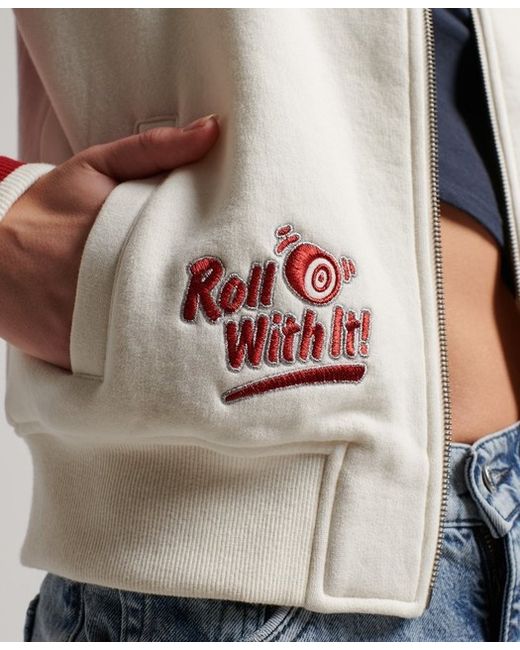 Superdry Script Collegiate Bomber Jacket. Signature Superdry tab. Whether you prefer to race around the rink or go at your own pace, do it in an authentic, personal style. Body lining. This does not affect your statutory rights.
