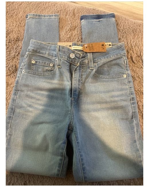 This product is a pair of Levi's women's jeans in a size small, crafted from cotton denim in a stylish slim fit. The jeans feature a classic blue colour, a zip closure, and a 5-pocket design with a button accent. Perfect for the summer season, these jeans are machine washable and have a fashionable skinny style, making them a versatile addition to any woman's wardrobe. Made by the iconic brand Levi's, these jeans offer comfort and style for everyday wear. Waist 26 RRP 100