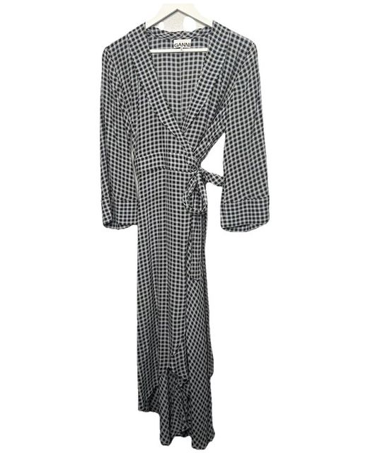 The tie closure secures a flattering fit while the V-neck and 3/4 sleeves add a touch of classic sophistication. Ganni size 38 uk 10 wrap waist blue/black gingham check viscose midi dress. Underarm to underarm:19x2=38 bust.