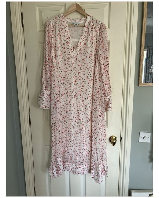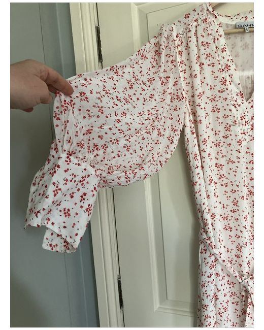 Absolutely stunning summer dress from Ganni. Very flattering cut as wide and wide arms. Can be worn with and without belt. Pockets ! I was planing to wear with little denim jacket but the light colour doesn’t suit me. 100% viskose Washable Original spare button still attached !