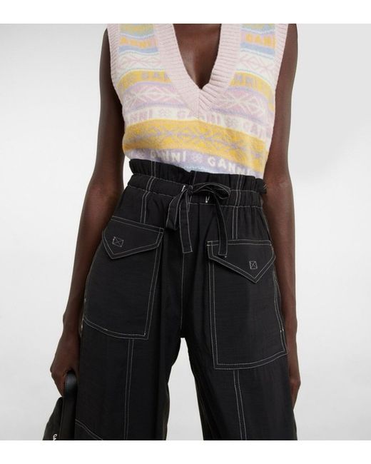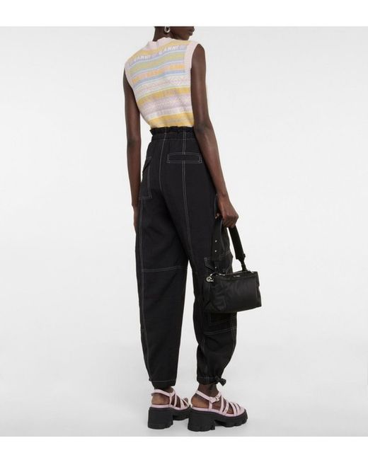 Calling all GANNI girls! Brand new with tags RRP £225 - and from this season's collection Size EU 32 UK 4 Would recommend going one or two SIZES DOWN in these for a more snug fit around the waist - I am a 10 and wear a 6 (have fairly narrow hips). "These black trousers are GANNI's take on cargo styles. They're crafted from a lightweight recycled fabric with a high paperbag waist, multiple pockets and contrast topstitching."