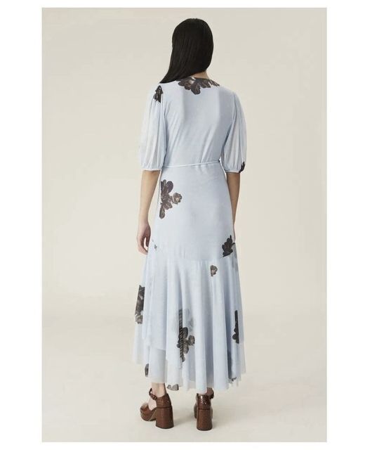 GANNI Printed Mesh Wrap Dress (heather) - size 36 New With Tags