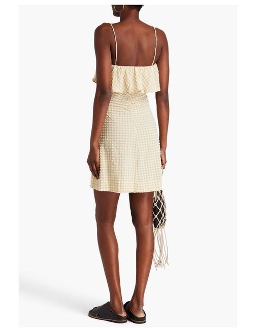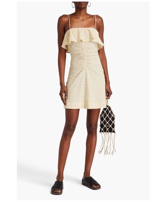New very cute Details • Dress • Gingham • Seersucker • Ruffled trims • Ruched • Adjustable straps • Concealed zip fastening along side • Mid-weight, non-stretchy fabric • Machine wash • Imported 51% Recycled polyester 43% Polyamide 6% Elastane No refund