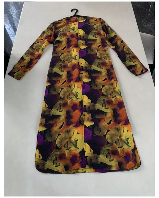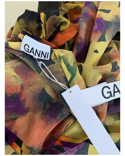 Ganni Abstract-Print Silk-Blend Long Sleeve Midi Dress. Dispatched with Royal Mail 1st Class. Made from medium heavy non-stretchy crepe fabric. Material 45% silk/55% viscose. Cut for a relaxed fit. Twist neckline with a tie collar. Side slits. Curved hemline. Thank you for looking.