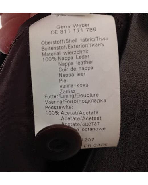Classic Dark Brown Gerry Weber Nappa Leather Jacket - Women's Size 14. New (unworn) with manufacturing labels and replacement button fully intact, no store purchase tags. Lined with acetate and measuring 29" in length and 20" armpit to armpit. Label ref. DE811171786