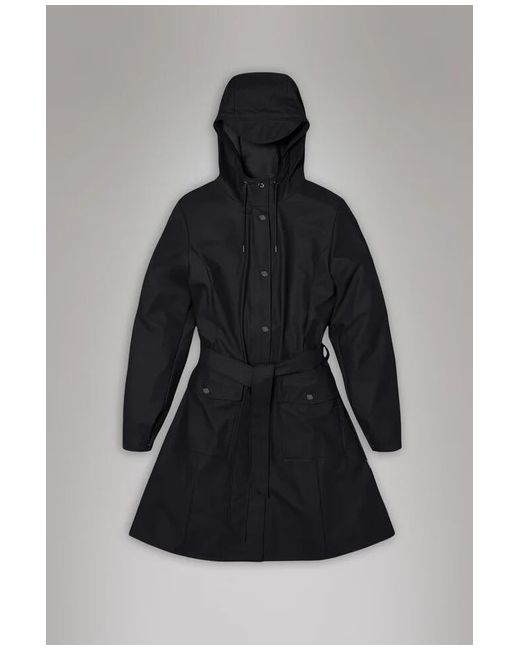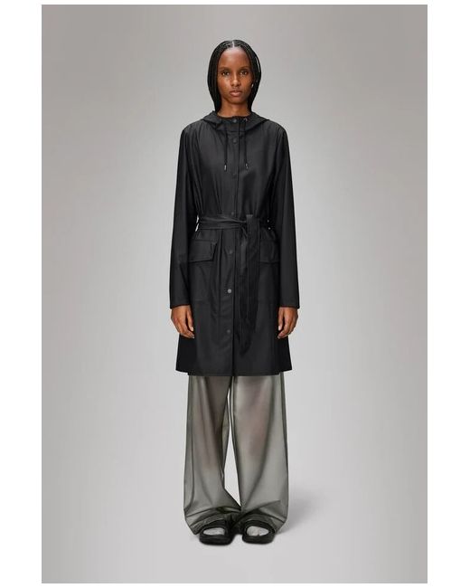 Stay stylish and dry with the sleek and modernRains Curve Jacket in classic black. Hood : Adjustable hood for added protection in rainy weather. Material : Waterproof fabric with a smooth, matte finish.